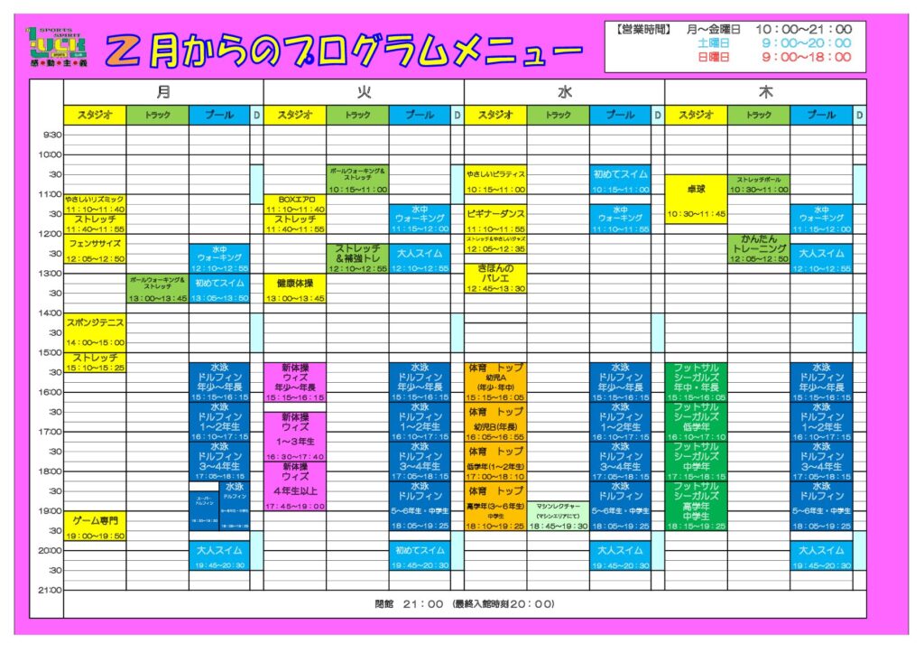 2026年2月~フィットネスプログラム表